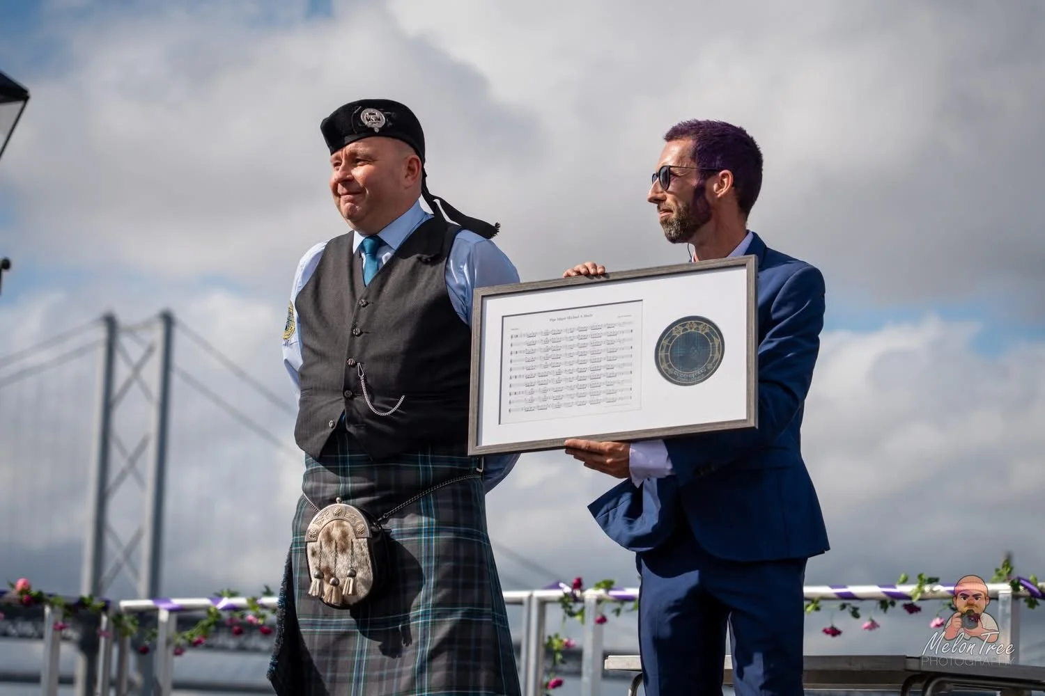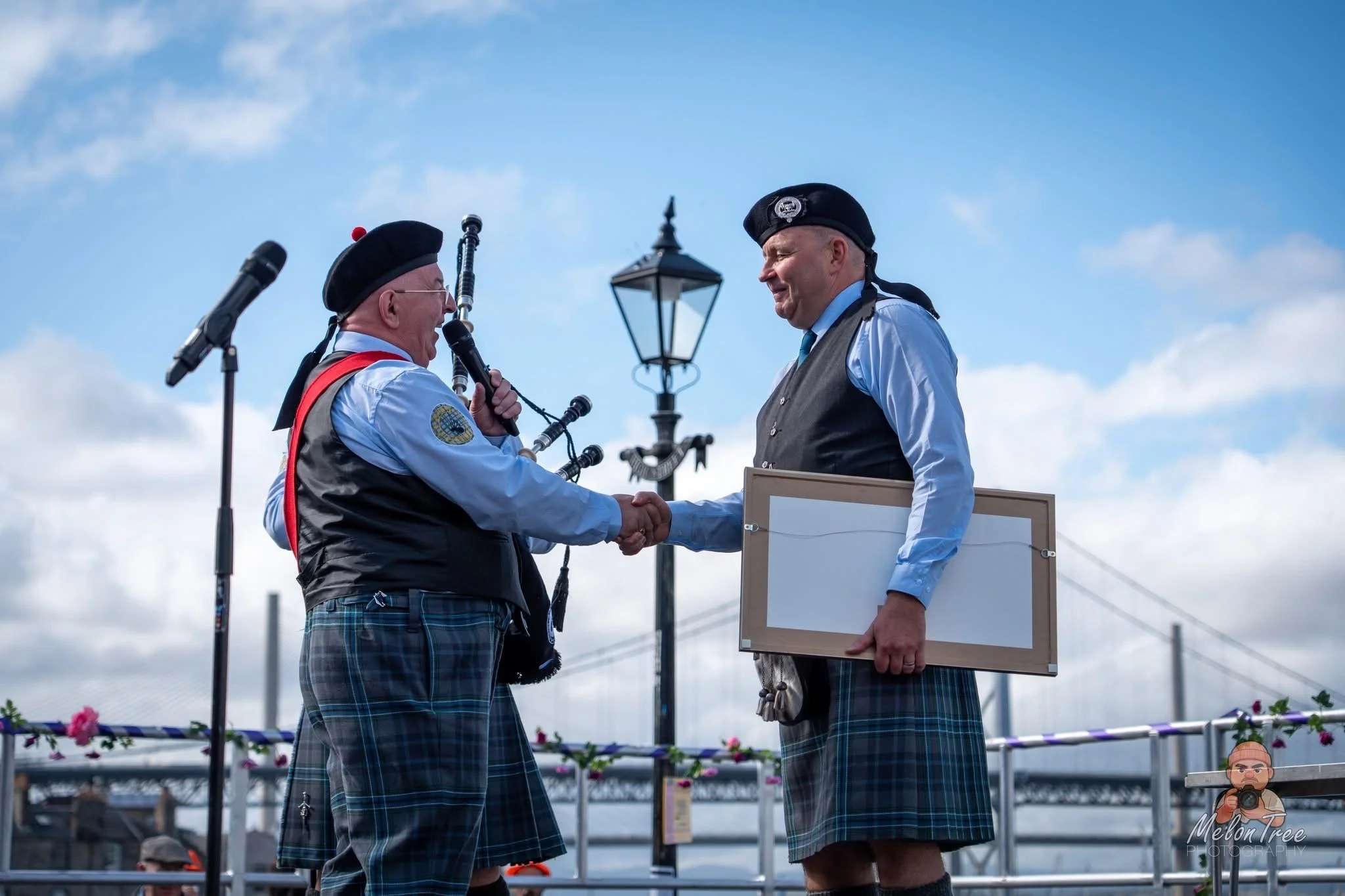 On the 9th of August, after we played our local Fair, We presented Michael Shields, our Pipe Major with a surprise for his 50th Birthday, his very own tune, named after him. A video of the presentation can be found here